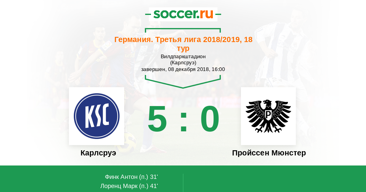 Протокол матча Карлсруэ против Пройcсен Мюнстер