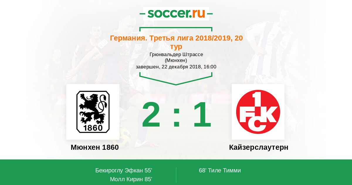 Протокол матча Мюнхен 1860 против Кайзерслаутерн