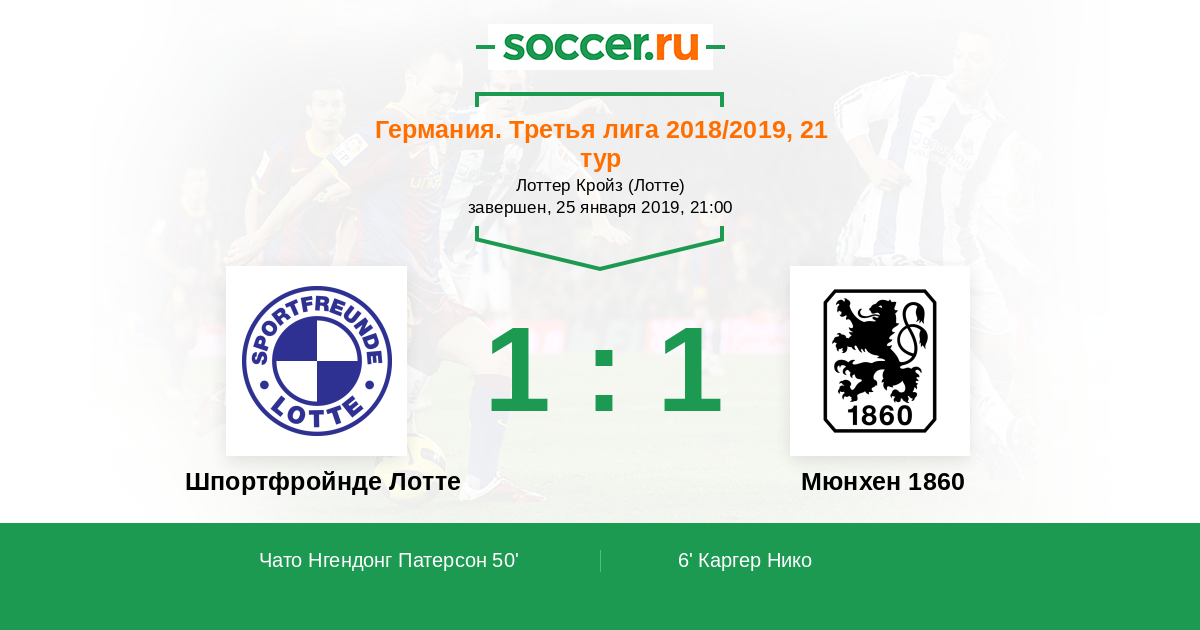 Протокол матча Шпортфройнде Лотте против Мюнхен 1860