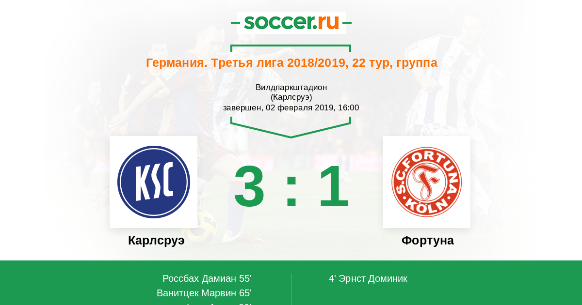 Протокол матча Карлсруэ против Фортуна