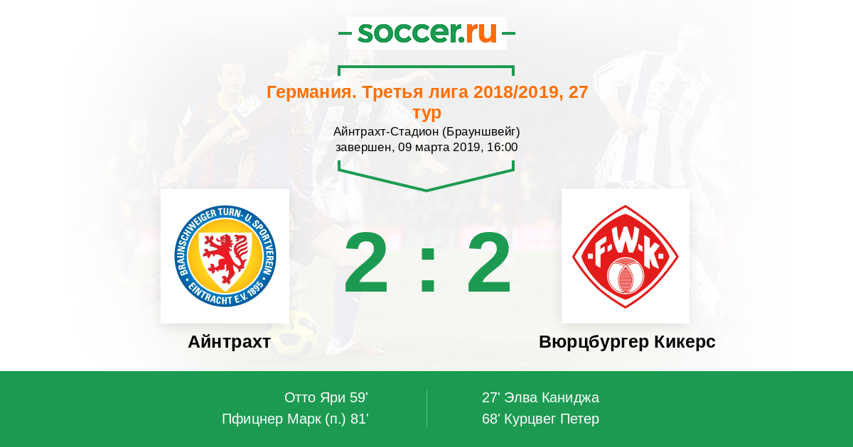 Протокол матча Айнтрахт против Вюрцбургер Кикерс