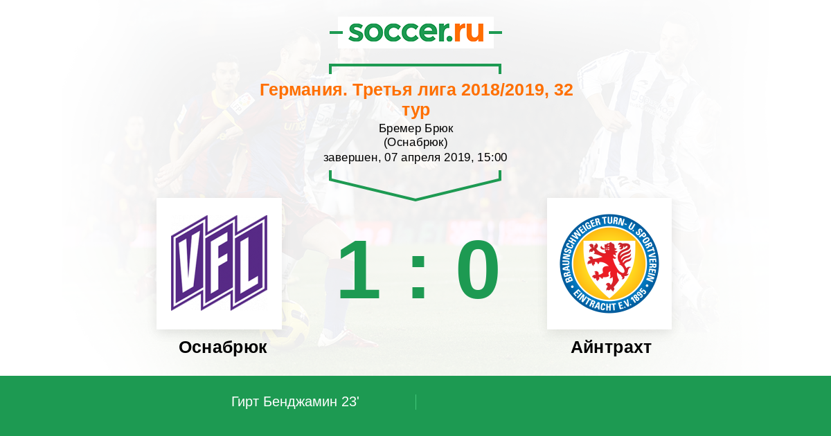Протокол матча Оснабрюк против Айнтрахт