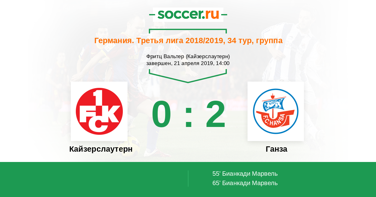 55' (0:1) Бианкади Марвель (17) (Брайер Паскаль (39))