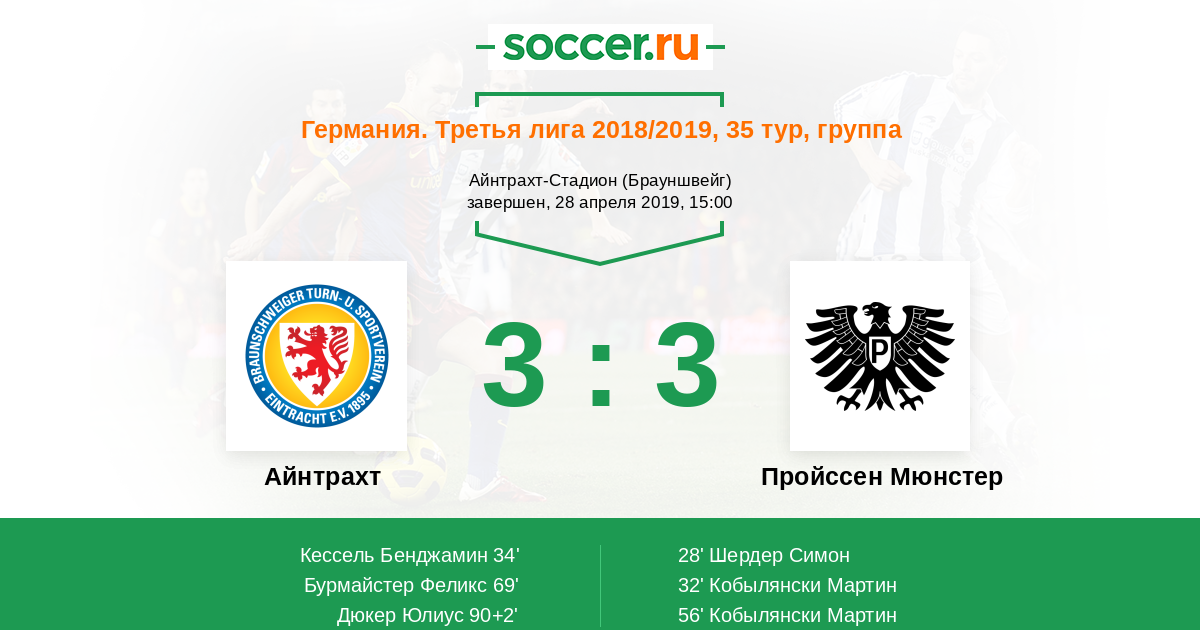 Протокол матча Айнтрахт против Пройcсен Мюнстер