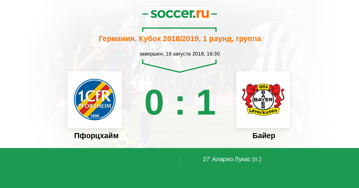 Протокол матча Пфорцхайм против Байер
