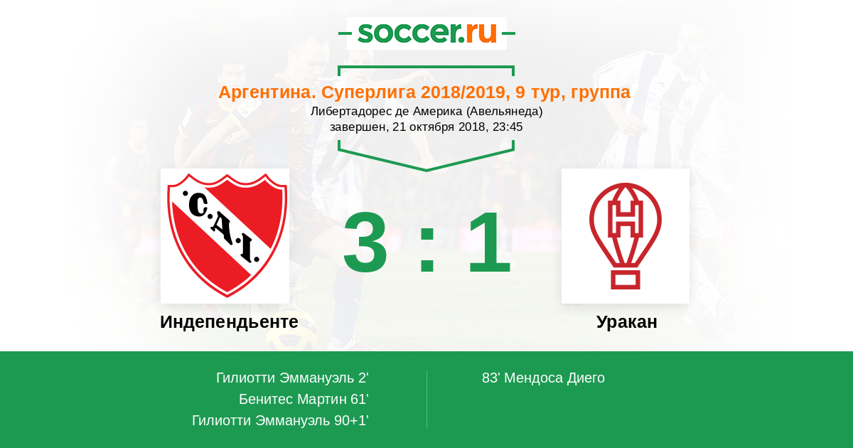 Протокол матча Индепендьенте против Уракан