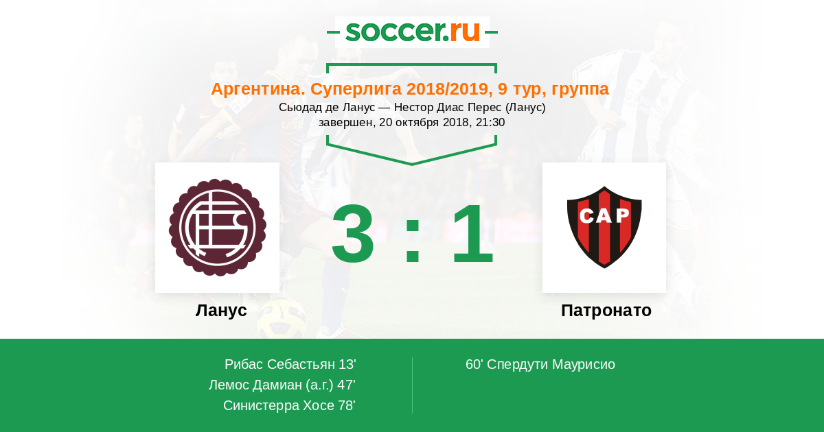 Протокол матча Ланус против Патронато