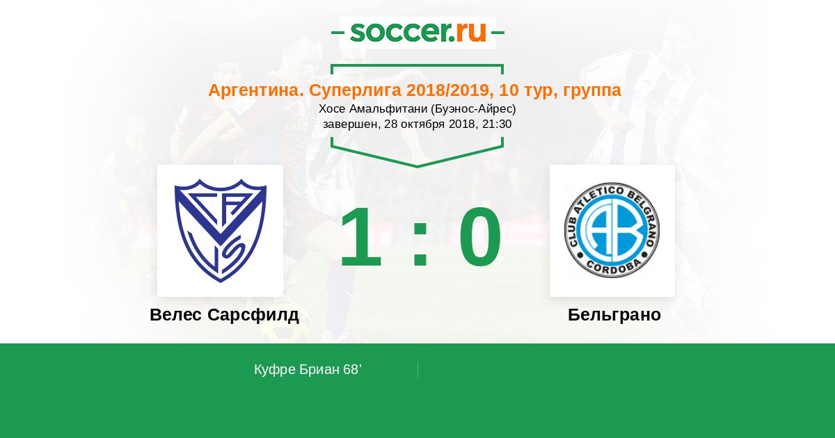 Протокол матча Велес Сарсфилд против Бельграно