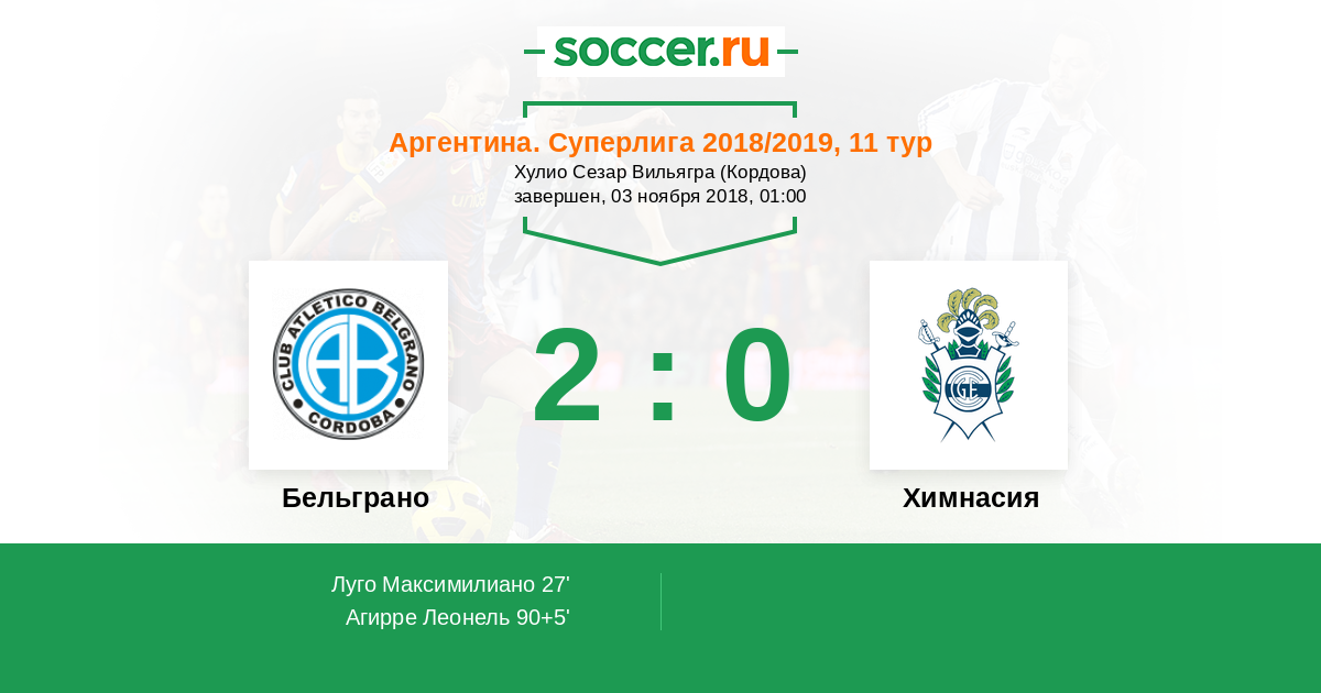 Протокол матча Бельграно против Химнасия