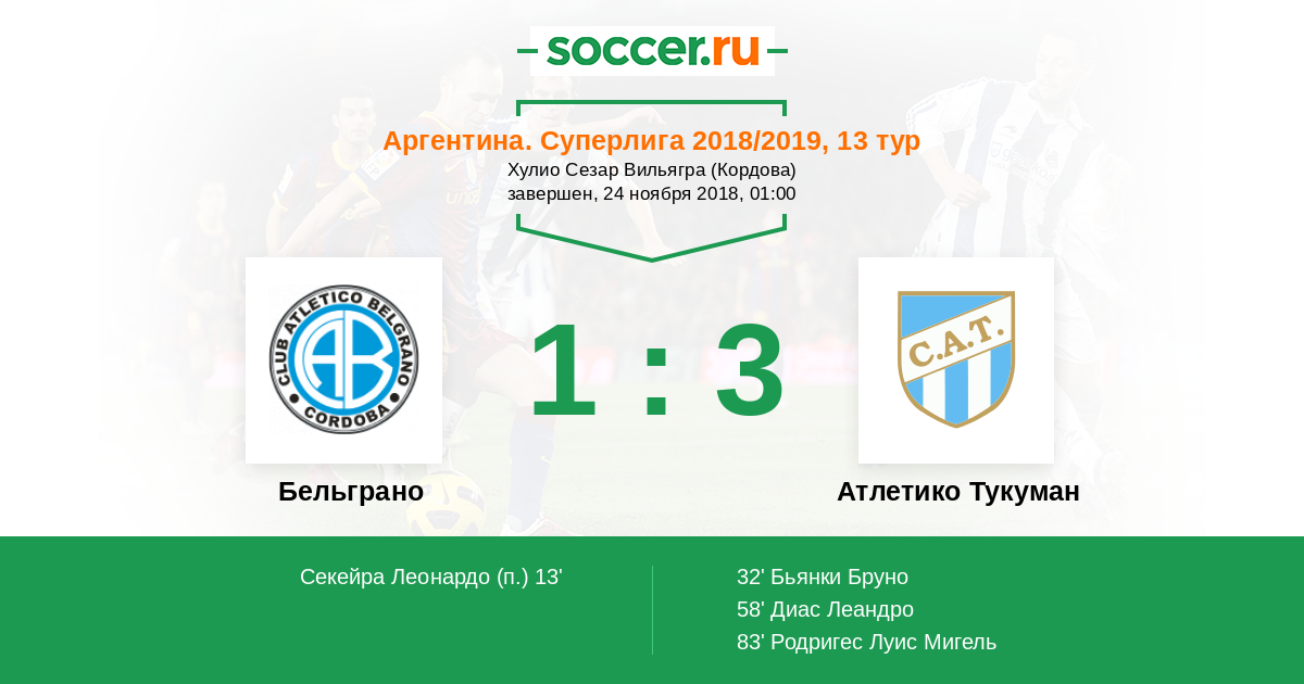 Протокол матча Бельграно против Атлетико Тукуман