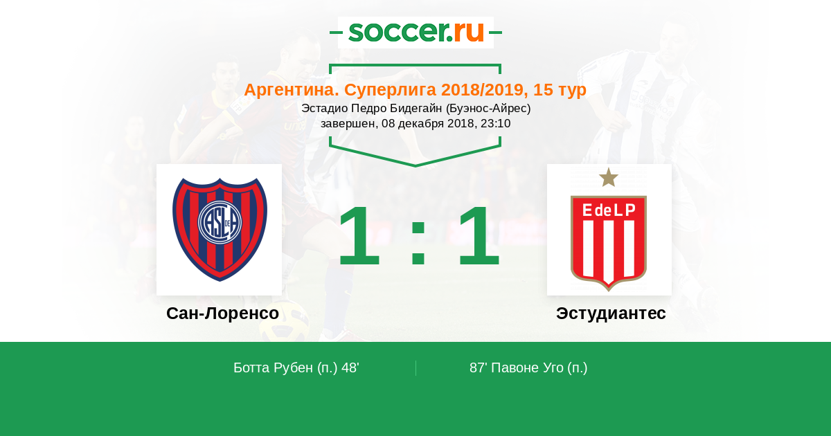 Протокол матча Сан-Лоренсо против Эстудиантес