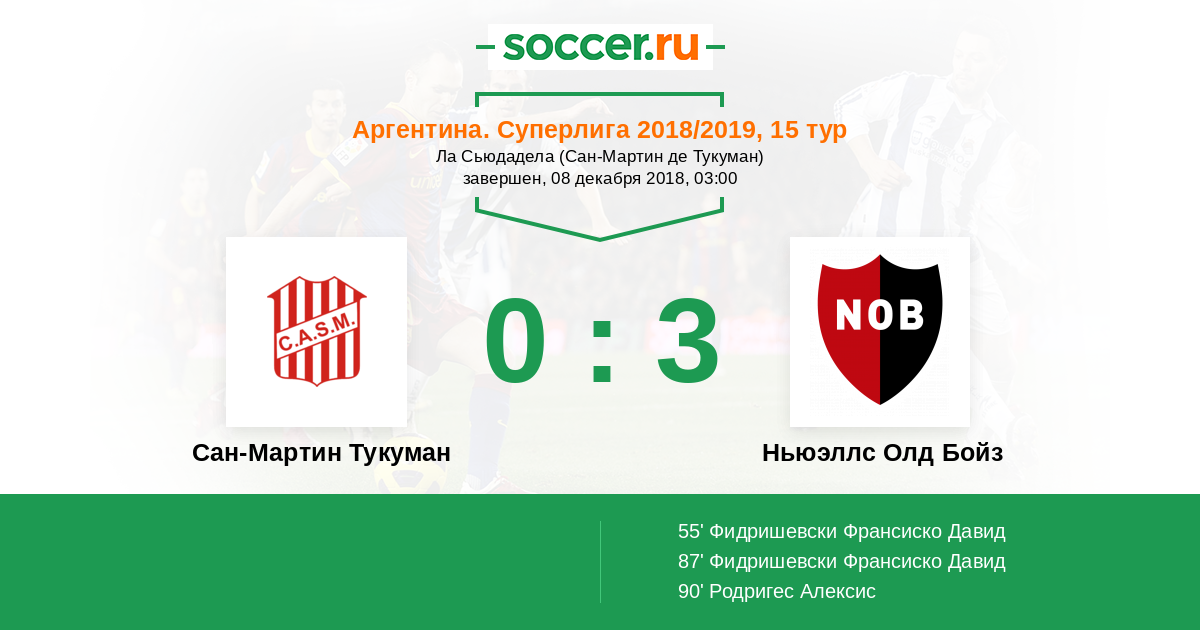 Протокол матча Сан-Мартин Тукуман против Ньюэллс Олд Бойз