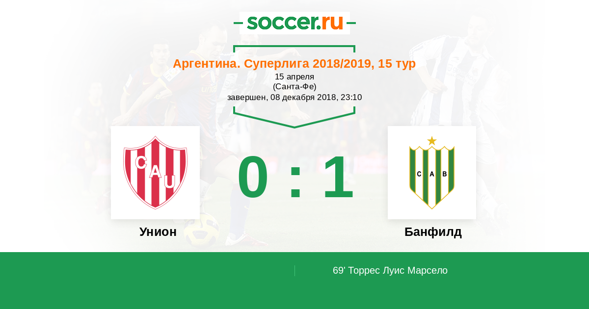 Протокол матча Унион против Банфилд