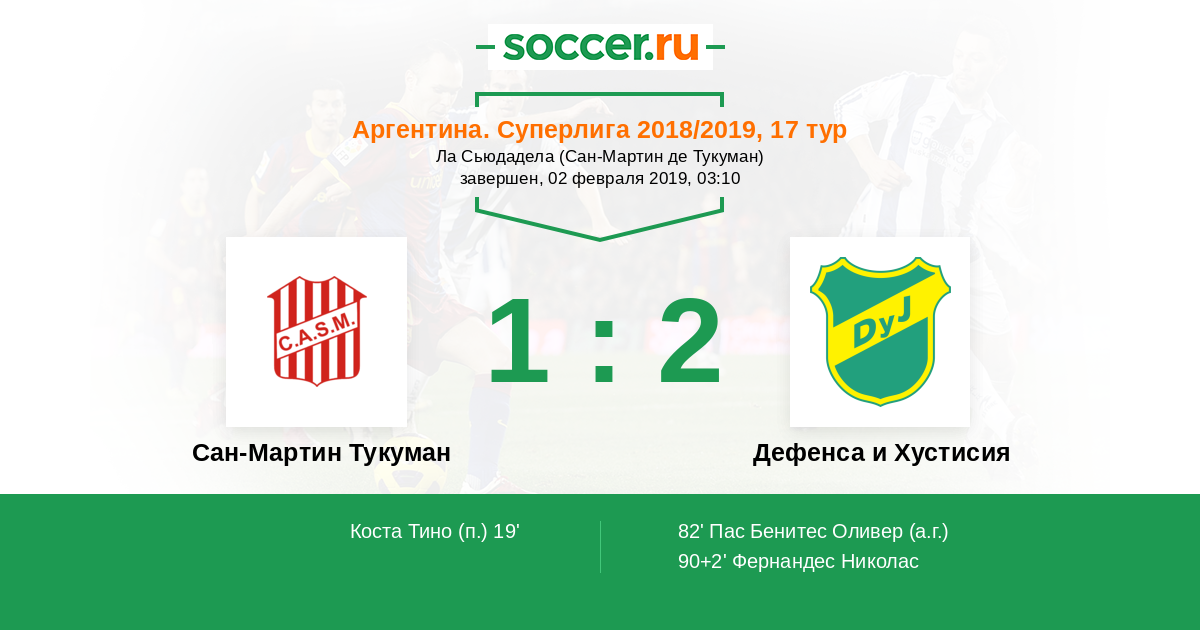 Протокол матча Сан-Мартин Тукуман против Дефенса и Хустисия