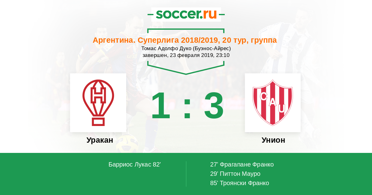 Протокол матча Уракан против Унион
