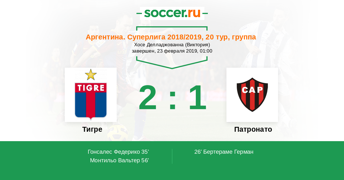 Протокол матча Тигре против Патронато