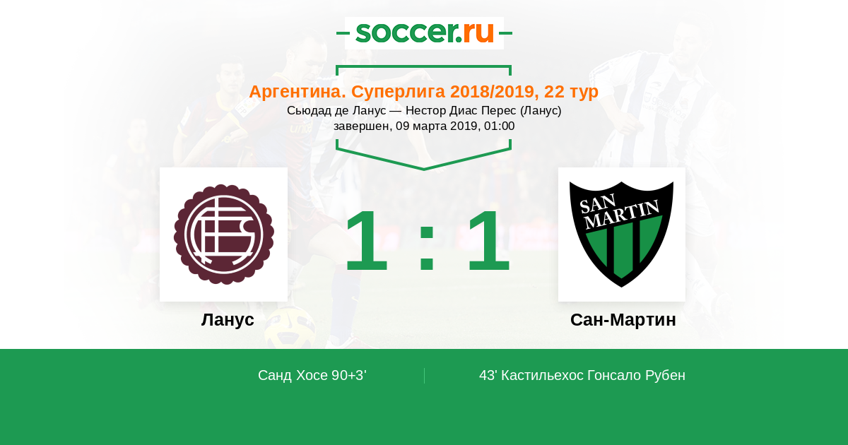 43' (0:1) Кастильехос Гонсало Рубен (20) (Мило Федерико Эмануэль (25))