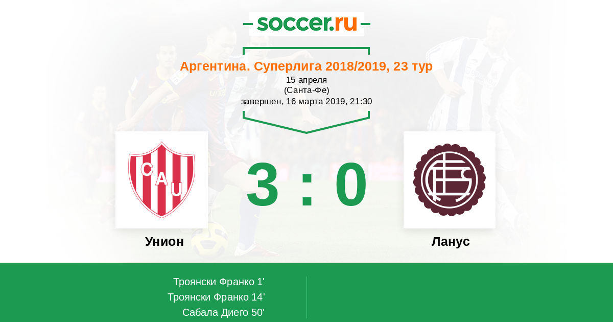 Протокол матча Унион против Ланус
