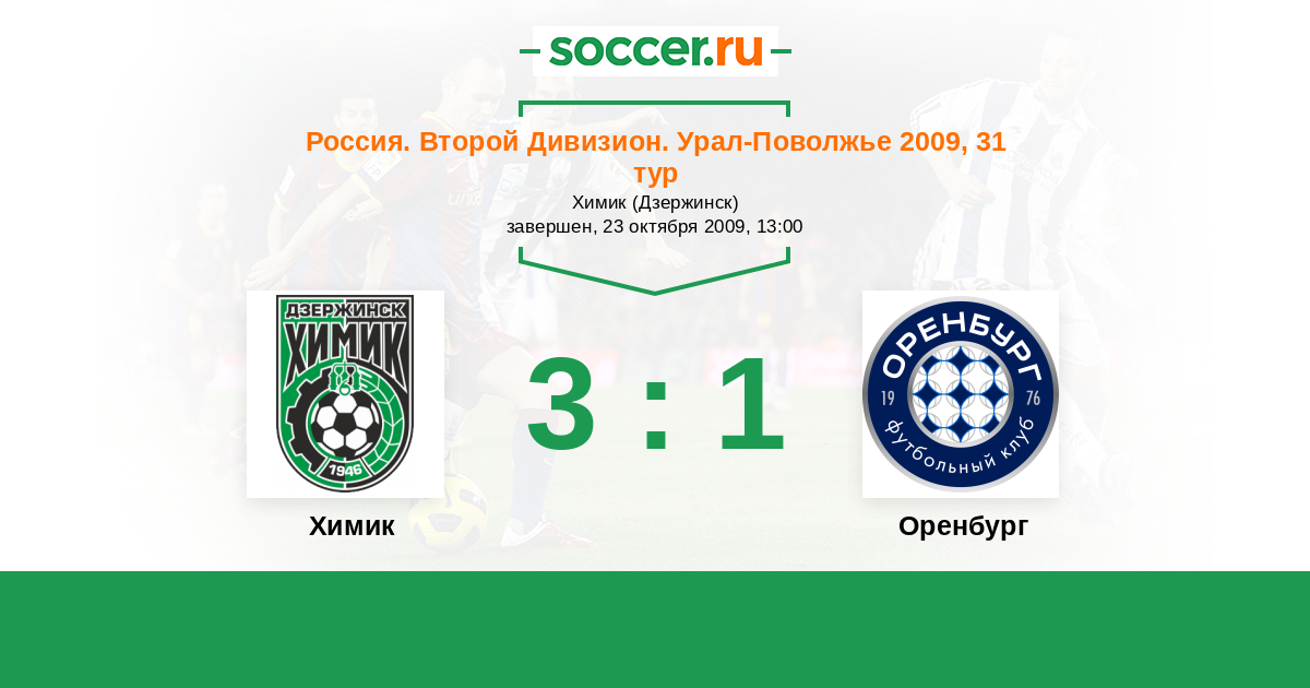 Россия. Вторая лига. Группа 4 15.07.2009 Газовик Логотип футбольный клуб Газовик (Оренбург) 3:1 Логотип футбольный клуб Химик (Дзержинск) Химик