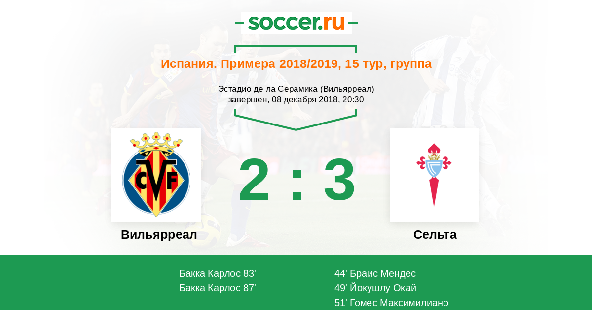 44' (0:1) Браис Мендес (23) (Аспас Яго (10))
