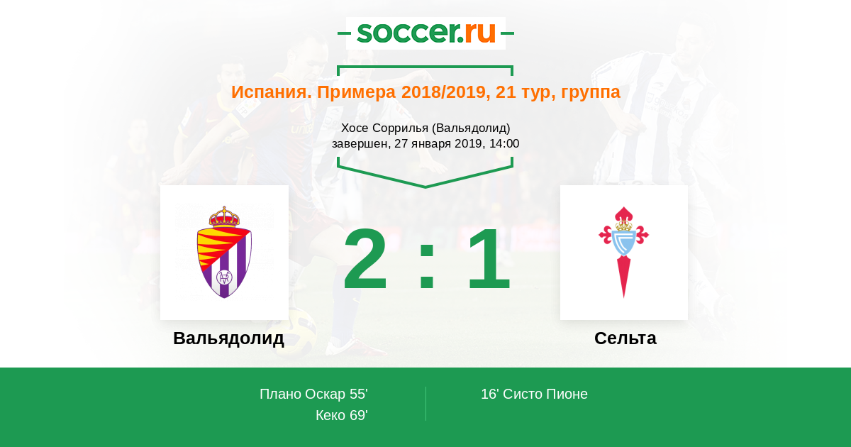 Протокол матча Вальядолид против Сельта