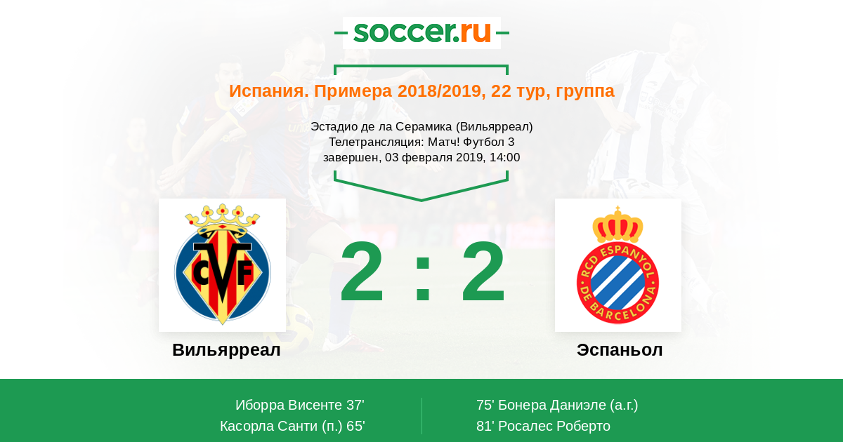 Протокол матча Вильярреал против Эспаньол