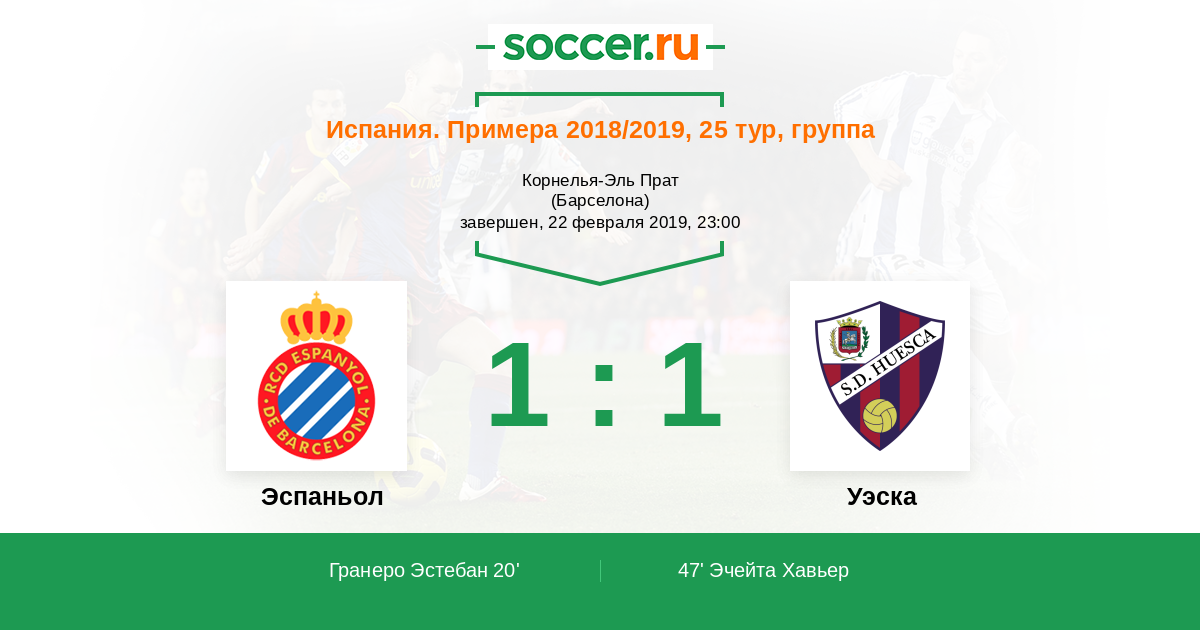 Протокол матча Эспаньол против Уэска