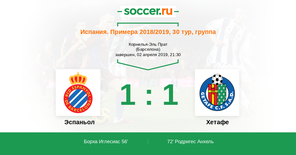 Протокол матча Эспаньол против Хетафе