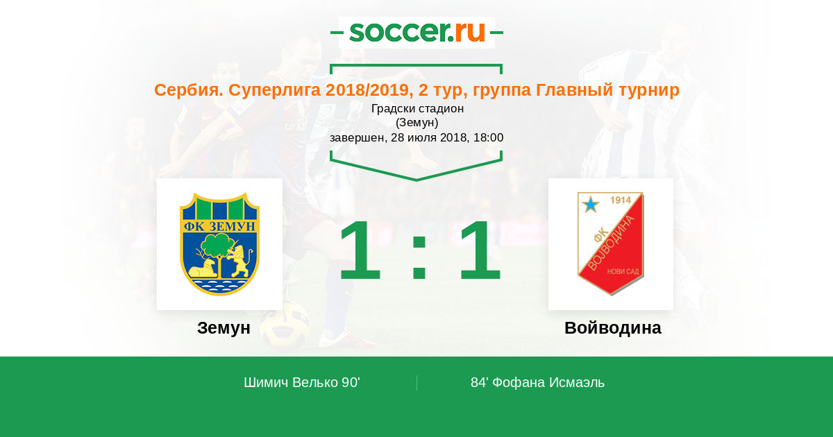 Протокол матча Земун против Войводина
