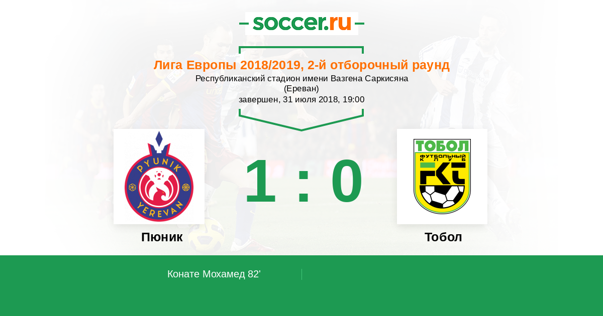 Протокол матча Пюник против Тобол