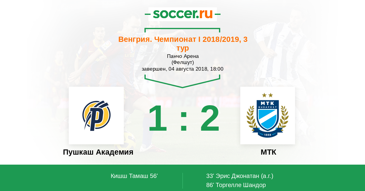 Протокол матча Пушкаш Академия против МТК