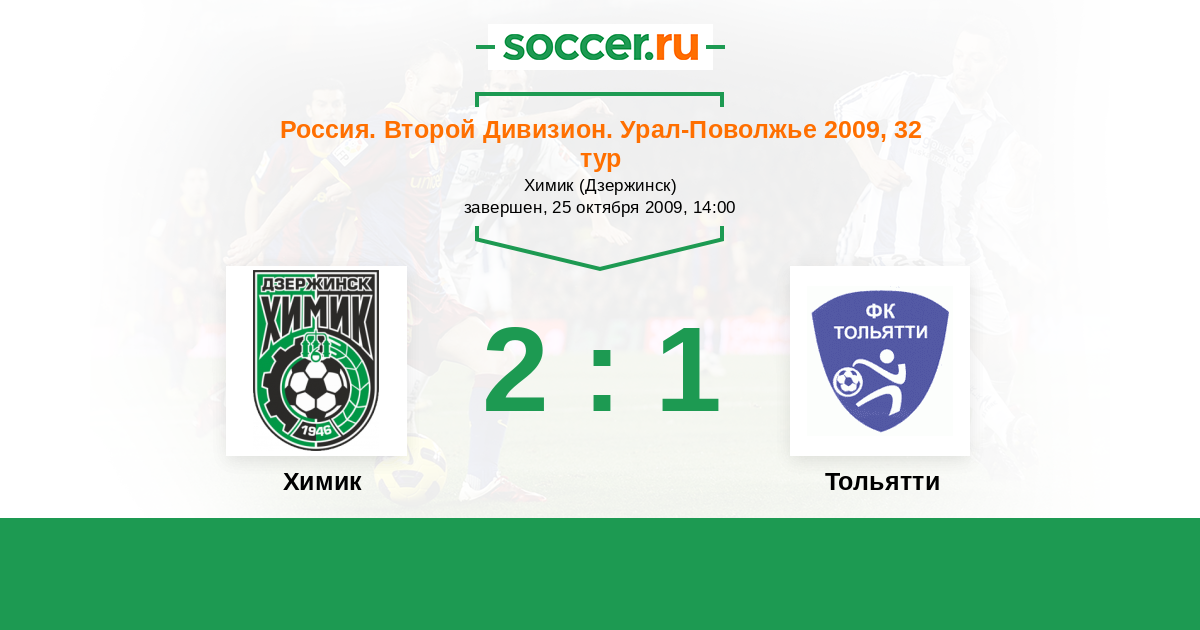 Россия. Вторая лига. Группа 4 25.10.2009 Химик   2:1 Логотип футбольный клуб Тольятти Тольятти