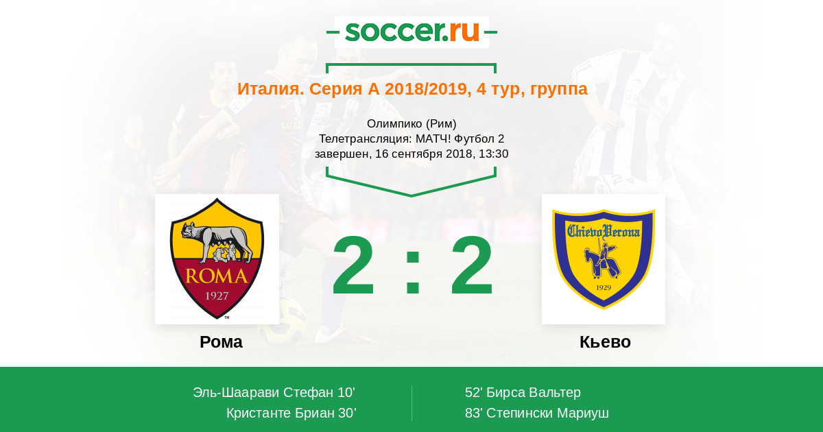 Рома явный фаворит в этом матче, даже не знаю что Кьево может противопоставить римлянам. Уверен будет победа с крупным счётом.