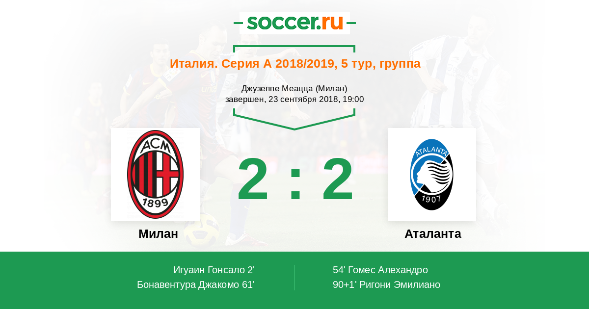Протокол матча Милан против Аталанта
