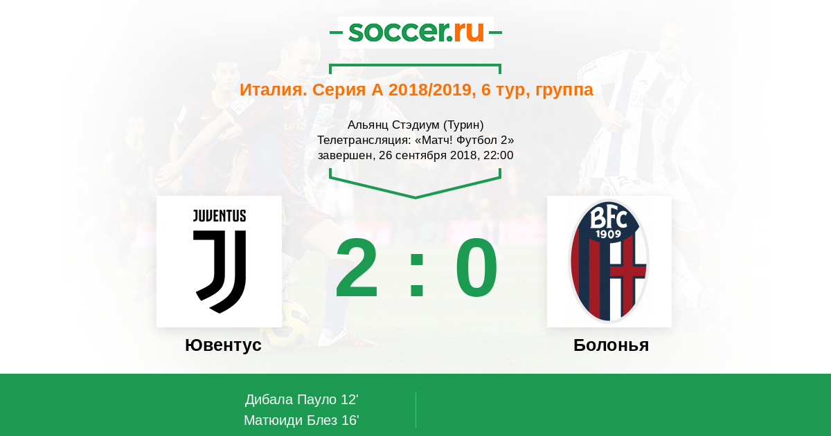 Протокол матча Ювентус против Болонья
