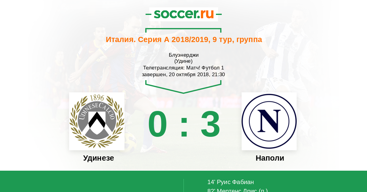 Протокол матча Удинезе против Наполи