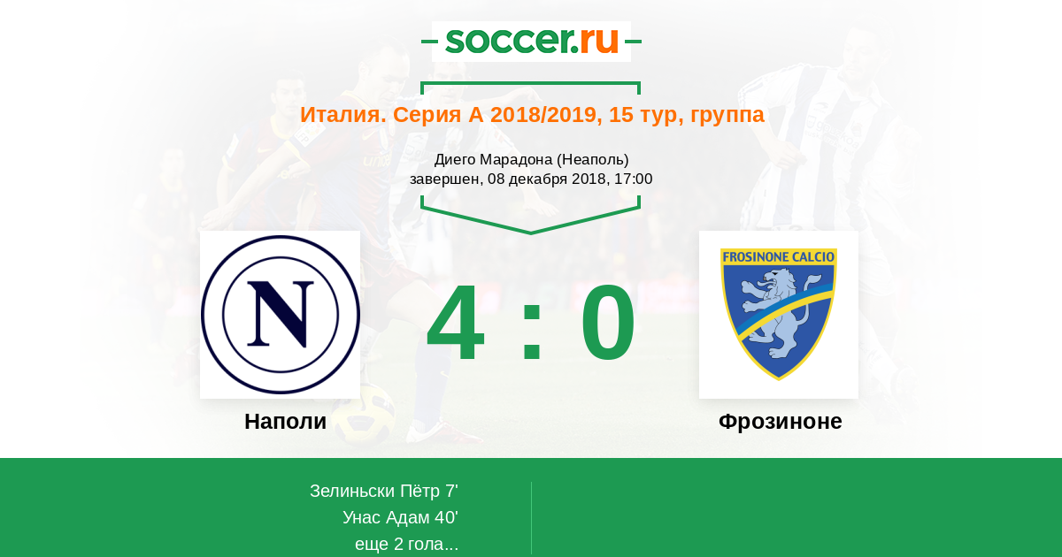 7' (1:0) Зелиньски Пётр (20) (Инсинье Лоренцо (24))