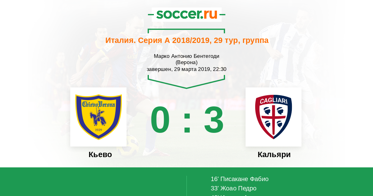 33' (0:2) Жоао Педро (10) (Барелла Николо (18))