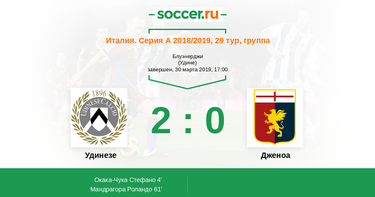 4' (1:0) Окака-Чука Стефано (7) (Фофана Секо (6))