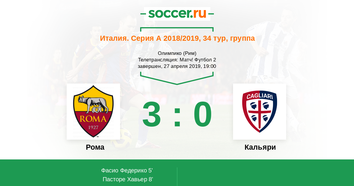 Протокол матча Рома против Кальяри