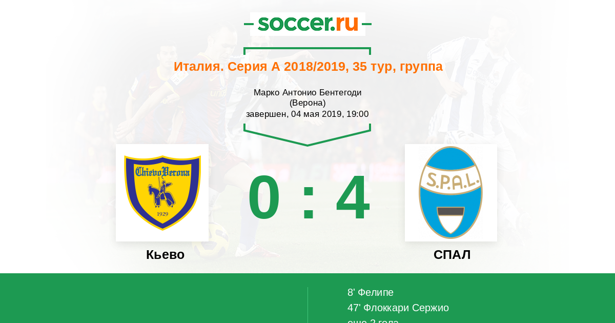 Протокол матча Кьево против СПАЛ