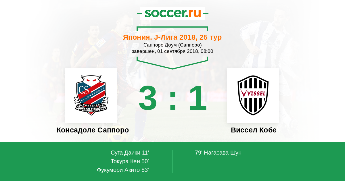 Протокол матча Консадоле Саппоро против Виссел Кобе