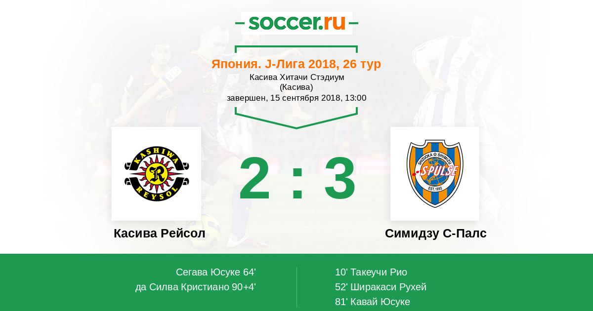 Протокол матча Касива Рейсол против Симидзу С-Палс