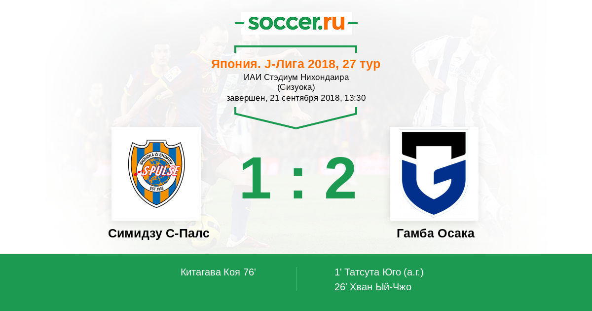 Протокол матча Симидзу С-Палс против Гамба Осака