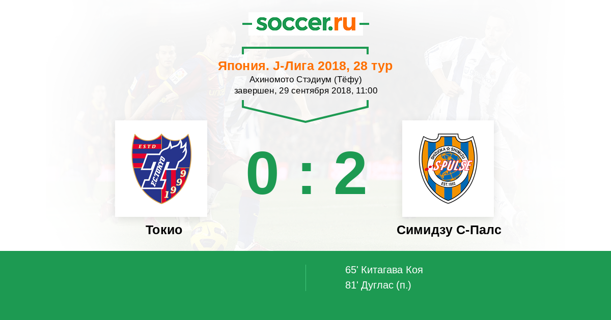 Протокол матча Токио против Симидзу С-Палс