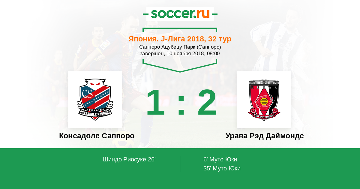 Протокол матча Консадоле Саппоро против Урава Рэд Даймондс
