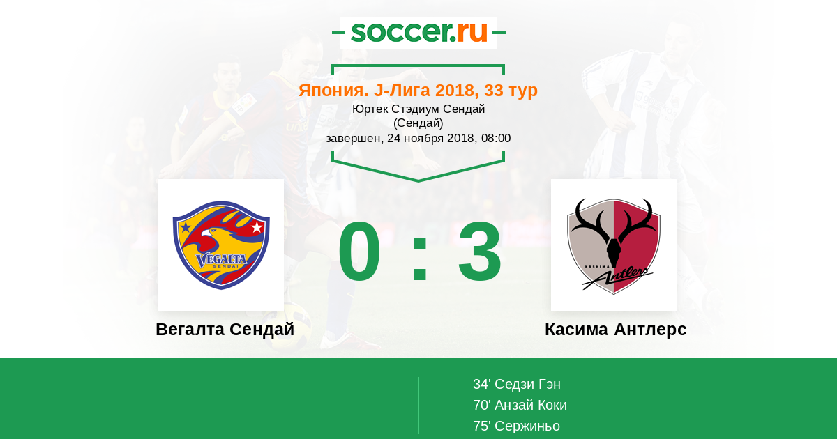 Протокол матча Вегалта Сендай против Касима Антлерс