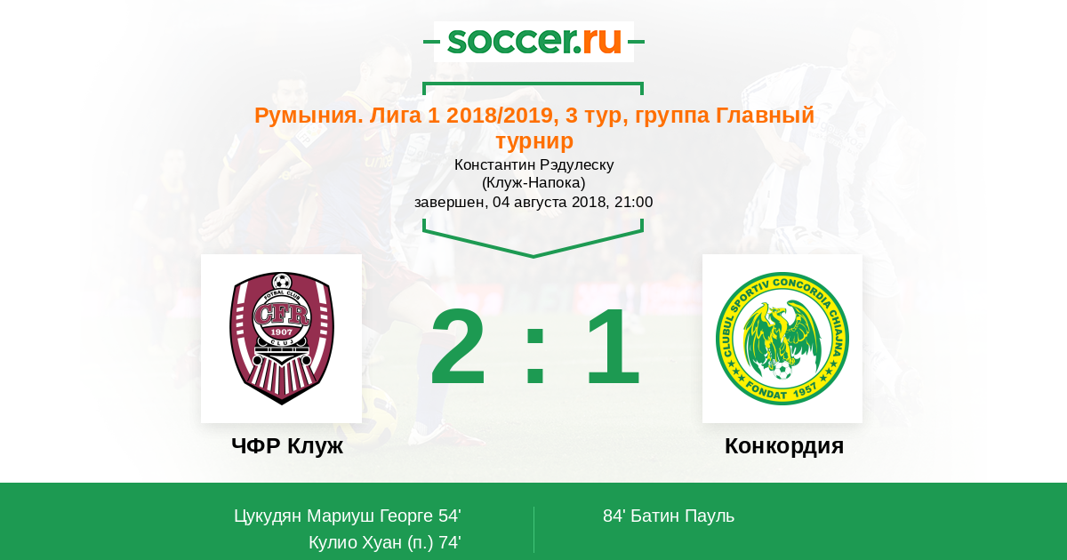 Протокол матча ЧФР Клуж против Конкордия