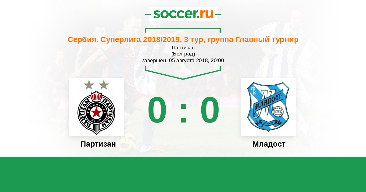 Протокол матча Партизан против Младост