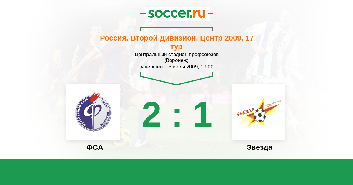Россия. Вторая лига. Группа 3 15.10.2009 Звезда Логотип футбольный клуб Звезда (Серпухов) 3:2 Логотип футбольный клуб ФСА (Воронеж) ФСА